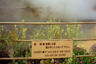 (ちょい訳: 危険■池に落ちますと、煮えます)