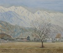憧れていた安曇野からの残雪の北アルプスです。これを自分の手で描いて見たかったから絵を習い始めたとも言 えます。果たして雪の山が描けるのかどうか不安でした。描いて見ると残雪の山より前衛の里山のほうがずっと 難しく感じました。陽春のひととき、絵は描かなくても白銀がまぶしい北アルプスを眺めているだけでも満足でした。 (画像をクリックすると拡大します) ![]() |