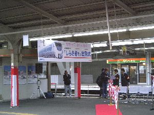 | 2003/03/15のダイヤ改正に伴い485系から683系に変わる出発式が名古屋駅で行われた。今回投入された683系は平成7年から北陸地区と関西地区を結ぶ『サンダーバード』,平成9年から北陸地区から首都圏への乗り継ぎ列車『はくたか』の681系,683系を改良したもので新たにグリーン車には喫煙コーナーを設置した。また各車両の一部にパソコン用コンセントと大型テーブルを設けてあります。また車体色はサンダーバードなどと同じ白がベースで、窓枠と同じ大きさでグレーのラインが入り、その下にブルーとオレンジのラインが入った専用色となっています。 |