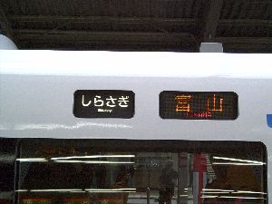 | この車両は『しらさぎ』だけに使われるのではなく『加越』にも使われるので車体側面にはshirasagi kaetsuと『加越』の文字があります。右の写真のLEGの富山の左に『しらさぎ』とあるのは『加越』と切りかえるためです。 |