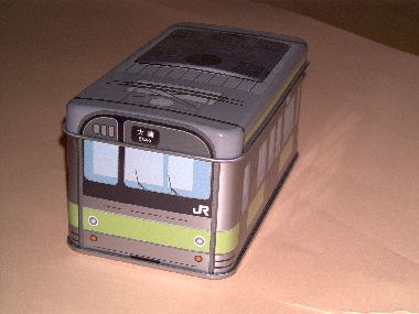 これは東京、上野etcのキヨスクで売られているクッキーの缶です。205系をモデルにしてありJR東日本承認済みだそうです。クッキー8枚入りで600円(税別)です。