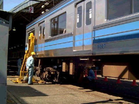 洗車されていました。伊豆箱根鉄道では週に一度車両は洗車されるそうです。