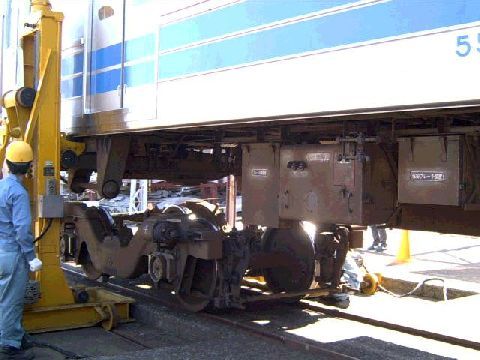 ジャッキで上げています。上げるのも下げるのもゆっくり慎重にやってました。