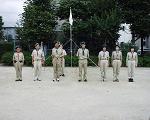 (2) 国旗儀礼「国旗手前へ。国旗正面。上げ。直れ。正面直れ。」