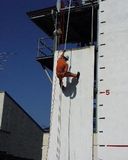 コイル巻きもやいで体を確保し,垂直登坂