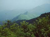 ![]() 13 同じく二本ボソから南へ亀山(849m)を望む。手前の丸い尾根が亀山。亀山が低く見えることから,ここ二本ボソへの道が急な登りとわかる。カブ隊は亀山へのコースの方が無難。 |