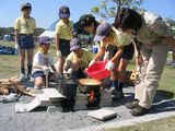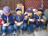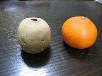 団委員長いわく,絶好のボーイスカウト日和(晴天)。CS,BSは作った飛行機の初飛行,VS隊はテラコッタで作った土笛を競いました。それぞれ良い製作物・作品となりました。 終わりに,お母さん方が準備したおでんをいただきました。残ると思った沢山のおでんがほとんどなくなりました。ありがとうございました。 下の写真左は乾燥前の土笛。丸く作ったが,卵型が標準か?細長くても良い。たいていの土笛は鳴るといいます。確かに,こんなので鳴るの?と思うものまで,かえって素朴ないい音が出ていました。でも,体積が小さかったり吹き口がいびつだったりすると,うまくいかないようです。乾く前に鳴らしてみて,うまく鳴らなかったら口の形を整えるといいでしょう。 土笛は良く乾燥させてから(2週間ほど)焼かないと,割れてしまいます(特に肉厚のもの)。乾燥すると白っぽくなります。焼くときはオーブンレンジで170度位に設定し,もとの茶色になるまで焼きます。焼きすぎてもいけないようです。写真右は,1週間乾燥させて,170度で25分間焼いたもの。