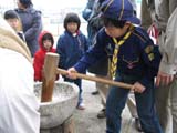 | あいにくの小雨のため,急きょ設営したフライの下でクラフト(今年はビニールの落下傘)。 雨の合間に,作った落下傘を投げ上げて遊びました。 ![]() ![]() ![]() 恒例のお餅つきも,皆さんのおかげでうまくできました。前日の臼の準備から後片付けまで,皆さんご苦労様でした。 ![]() ![]() BP最後の言葉は,ボーイ隊の2人が読んでくれました。毎年しっかり聞いて,BPの心や考えへの理解を深めましょう。 ![]() |