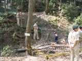| 反省 ・長期キャンプと移動キャンプでは装備や食事のメニューもおのずから違ってきます。縦走に適した装備を。 ・担ぐ荷物の重さは,日程と体力によりますが,水と食材を詰める前に,テントを含め10kg以内にしましょう。 (雨具など必要なものは欠かさないこと) 事前訓練では,重めでもいいかと思いますが,本番では1gでも軽く。 ・ごみは持ち帰りましょう。ご飯粒も残さないように。 大便さえ持ち帰る人たちもいます。自然愛護の精神を忘れずに。 ・事前にスカウト自身でよく計画を練り,リーダーの指導を受けましょう。 |