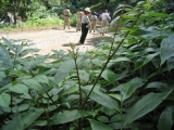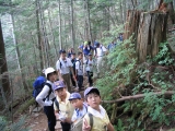 はい,雨の中行ってまいりました。普通は雨天中止といきたい所ですが,登山には雨も付き物です。その雨に慣れるためにも,このような日に山を歩くわけです。 道樹山に着くと,晴れ間が見えてきました。日の当たった所から水蒸気が立ち上り,その水蒸気が冷気でまた細かい水滴に戻る様子が,日にあたる朝もやのようで幻想的でした。湿気を含んだ空気がひんやりしていて,とても気持ちがよかったですね。弥勒山に着くと見晴らしが開けて,山に登るもう一つの目的も果たせました。ツインタワーや春日井から名古屋の町並みが見渡せました。たくさん汗をかいた甲斐がありました。BSとVSは余裕でしたね。 一方カブ隊は苦戦しました。このごろになく,暑さもいくらか和らいだとはいえ,ポンチョを着て歩くのはやはり大変だったろうと思います。よくがんばりましたね。これに懲りず,いろいろ体験を積んでください。楽しいこともあり,つらいこともあります。こういう体験をしてやっと乗り切れることもあるのです。本番が晴れることを祈りましょう。 いつものことながら,リーダーの皆さんご苦労様でした。また,団委員長の車の伴走も心強かったですね。 行程(BS,VS隊) 8:30川名集合→9:17JR鶴舞発→9:41JR定光寺着→12:50道樹山着→13:55弥勒山着→14:45植物園 →15:17JRバス植物園発→15:47JR高蔵寺発 追記:樹の勢いのよい時です。樹液が雨に混ざっていたのか,私はかぶれてしまいました。2日ほどたつと症状(発疹と腫れ)が出てきました。医者へ行ったら,ステロイドと抗生物質の軟膏が出ました。十分注意しましょう。 |