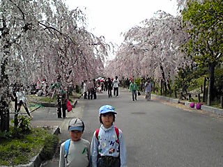 東谷山フルーツパークの枝垂れ桜は満開です。入口付近で募金をしたら、約一万円も集まりました。カブのお兄ちゃん達はお弁当の後、東谷山を登りました。帰りは「ゆとりーとライン」に乗ってみます。(BVS N副長より)