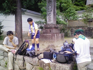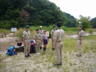 赤津に到着すると,北地区のBS隊がキャンプ中。スイカ,お茶,お菓子の差し入れをいただきました。ありがとうございました,「ボーイスカウトは皆兄弟」
