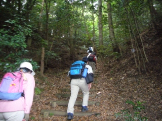 BS隊は美術館前をとおり遊歩道をひたすら登る。 やっと,馬の背についた。