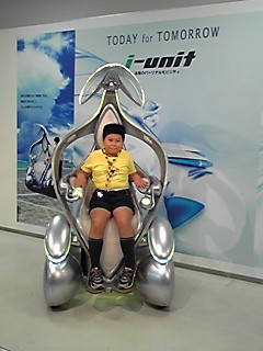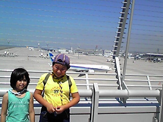 9月にボーイ隊に上がるOクンのお別れ会も兼ねて、ちょっと贅沢して特急『ミュー』に乗ってセントレアへ行きました。スカイデッキで、各国の飛行機を見ました。離発着の轟音にも慣れましたね。ジャンボも見られて、ラッキー!。空港ビルの奥に、ロボットの展示があり、乗る事も出来ました。