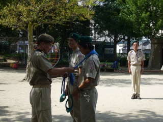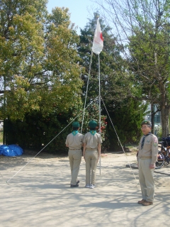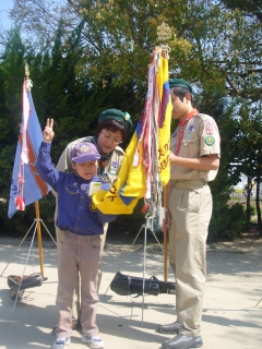 平成20年4月6日(日) I君CS隊に「やくそく」をして入隊。いっしょにスカウト活動を楽しもうね! 今回は,規律訓練などでスカウト活動の基本を学びました。
