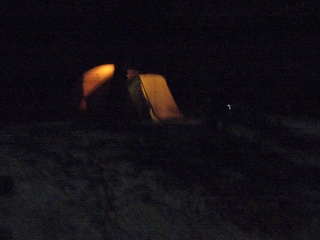 外は寒い!(なぜかリーダーテントは暖かい) 月がこうこうと輝く