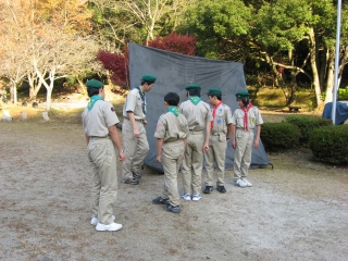 誰の心がけがいいのか,このごろ降り続いていた雨があがりました。ベンチャーへ上進した諸君おめでとう。受験のためとりあえず休隊となりますが,これからも時々行事に参加します。