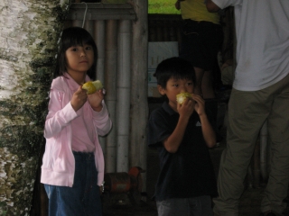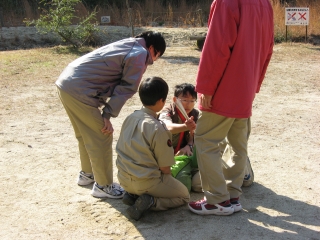 ・ゲームは,定番の「ロープ結び」「ベーコン取り」「狐狩り」。後半はCS隊も参加していい汗をかきました。その後で自分たちで始めたじゃんけんゲームも楽しそうでしたね。