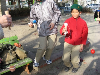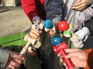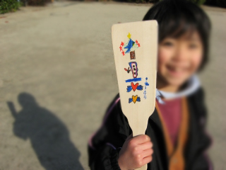 ・クリスマスプレゼントは,羽子板とけん玉。新年初集会で楽しく遊びましょう。きれいに色を塗ってきてね!