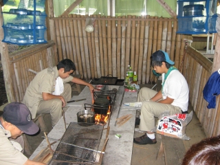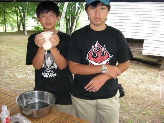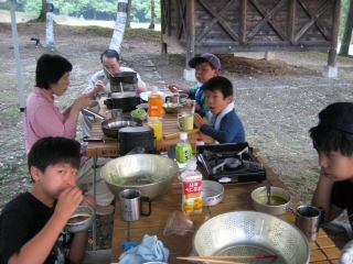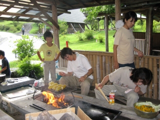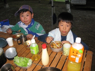 バーベキューもおいしかったですね。BS隊は前日から準備したうどんをていねいに仕上げていました。これも,こんぶと鰹節を使ったつゆでおいしくいただきました。