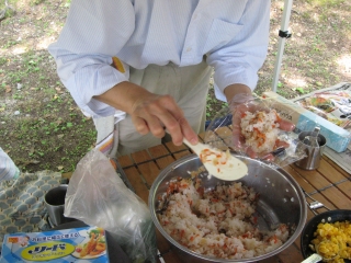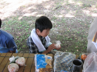 ・夜のプログラムの「パン作り」ではイーストが思ったようには発酵しなかったんですが,これもおいしかったですね。日差しは強かったので,陽があたっている間に発酵させておくと良かった。