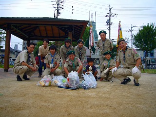 恒例スカウトの日の清掃活動,ご苦労様でした。公園で座っているお母さんから「きれいにしていただいてありがとうございます。」と声をかけられました。