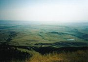 ロッキー東部のプレイリーを望む峠から,今来た方角(東)を望む。これがロッキーの東側の広大なるプレイリーである。 |