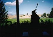 ウィットニー西部美術館内から外を望む。インディアン像の向こうにバッファロービルが馬に乗ったスカウト像が見える。 ここには,インディアン,ロデオ(躍動的),開拓史,などを題材にした,写実的であるがいやらしさのないすばらしい油絵がいくつも掲げてある。 "Can I take a picture?" "You bet!" しかし絵の写真は撮れなかった。いずれもすばらしすぎて,シャッターを押すことができなかったのだ。絵が好きな人なら,この気持ちをわかってくれると思う。 |