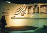コディ火器博物館 これはほんの入り口。西部劇で誰もが知っているウィンチェスター銃など,たくさんの銃が,会社別・年代順に展示してある。 アメリカが狩猟社会であること,また自分たちを守るために生活上銃が必要であり身近であることがよくわかる。 |