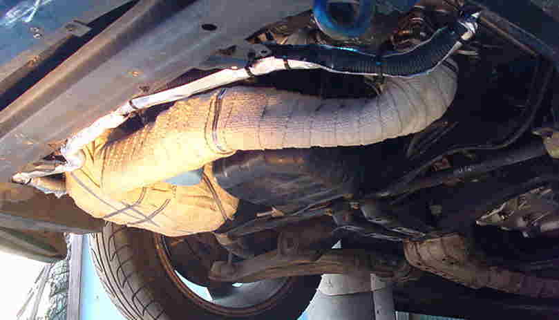 遮熱終了したらsymsEXマニを取り付けます。これも簡単にはいかず、知恵の輪状態で規定の位置に持っていきます。寝そべっての作業なので少し体力が必要かもしれませんね!!後は、外した逆の順序でタービン、フロントパイプを取り付けて作業は終了です。