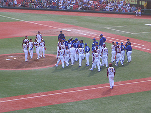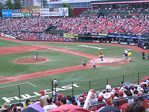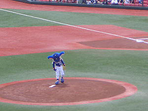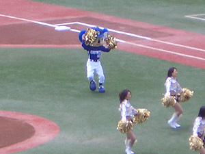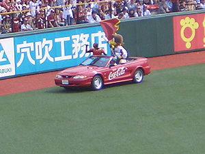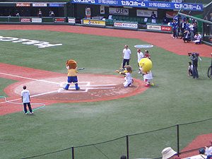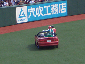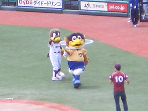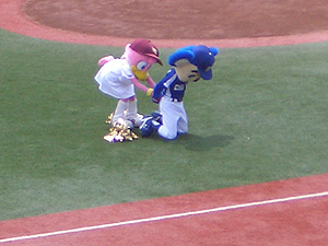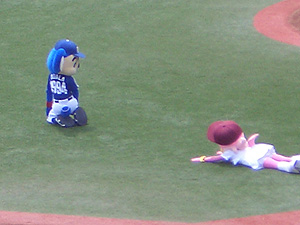 始球式、ピッチャーはドアラさん。 |