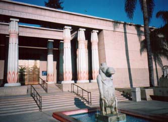先ず、これが博物館の正面玄関。手前はトゥエリス女神。 奥のドアはしっかりしまっていたので、最初閉館かと思って焦りましたが、あけてみたらちゃんと開館しておりました。 中は、入るとすぐチケット売り場で、大人は$7です。 展示室は、 GALLERY A,B,C,Dの4つで、入ってすぐの階の両側、2階に上がって両側に配置されています、こじんまりしているかと思いきやなかなか見がいはありました。 各々の部屋の展示物は、以下の通り。 GALLERY A - MUMMIES しょっぱなからミイラ尽くし(^^;) 人のミイラもあれば猫、魚など動物のミイラもあります。 カノプス容器もあり。 また、前回述べた王家の墓ツアーはこのGALLERYから始まります。 しかし、アメリカの人ってミイラが好きなのですかねぇ(^^;) この博物館のお土産コーナーには、ミイラグッズ(ミイラの缶ペンケース、ミイラの風船、ミイラの本etc)が充実。 どうしてなのでしょうね。 GALLERY B - FUNERARY PRACTICES ウシャブティ等、副葬品の類。 模型の船、ゲーム板、化粧道具、グラス等など 何故かハンムラビ法典のレプリカもあります。 近い地域のだからおいてありますみたいな感じで(^^;) GALLERY C - AKHENATEN & TEL EL AMARNA 本物はベルリンにあるネフェルティティの胸像のレプリカなど、アクナテン王時代のもの。 なお、この博物館のある、Rosicrucian Parkには、アクナテン王の礼拝所と称したメンバーズ・オンリーな建物もあります。 うーむ(^^;) GALLERY D ジョセル王の階段ピラミッドの模型、コプト織り、壷など・・・ああ、なにやら統一性が無い(^^;) 以上です。 しかし、良くもまあ、色々レプリカを用意したなぁというのが正直な感想です。下の写真は公園内の建物ですが、なんて表現したら良いのやら(^^;)