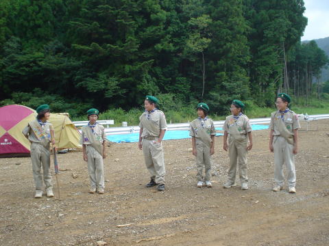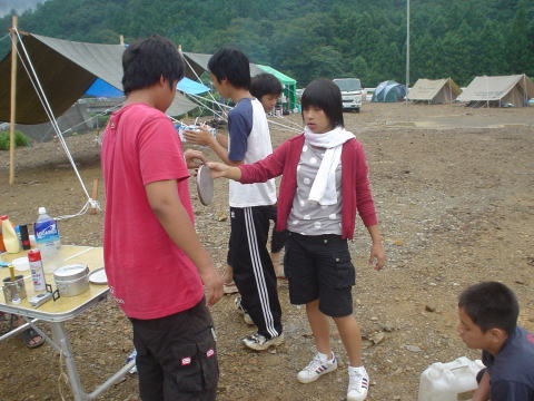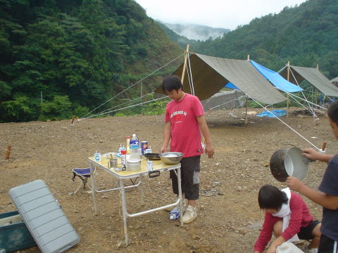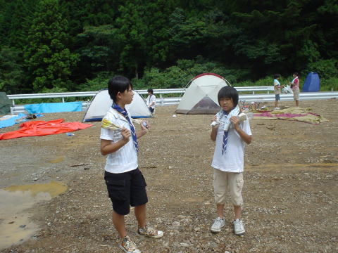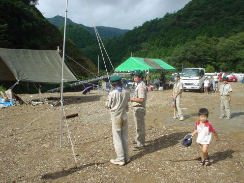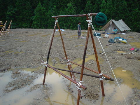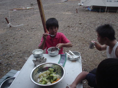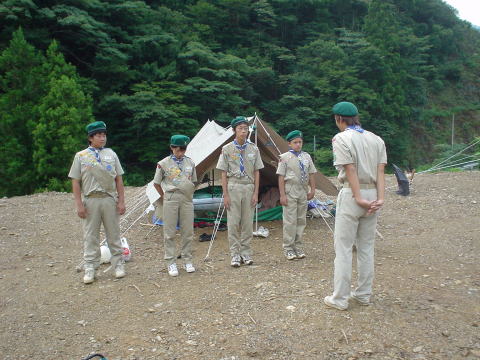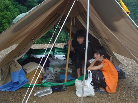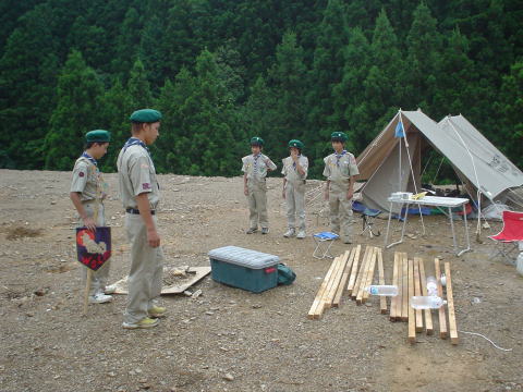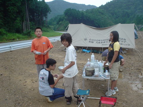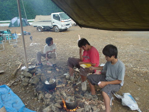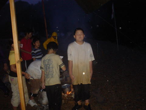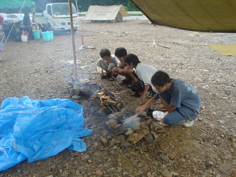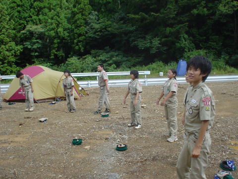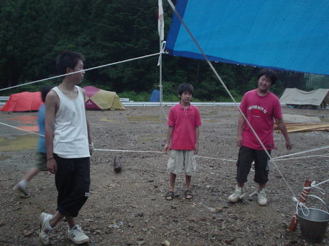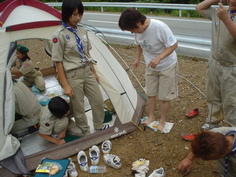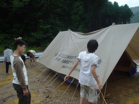 スカウトたちは雨の中の設営を続けながら調理をしていたので