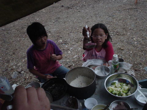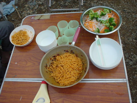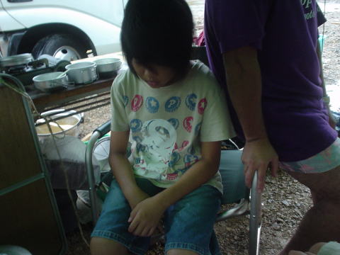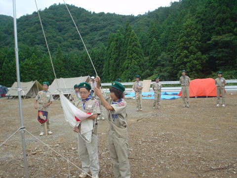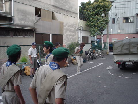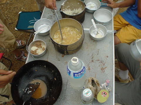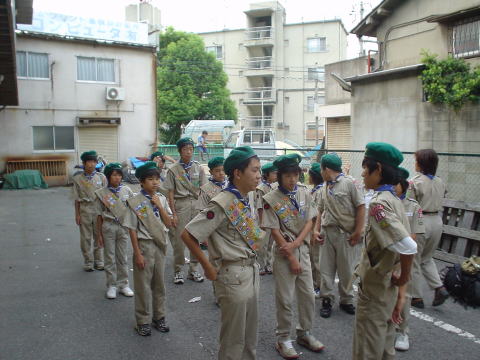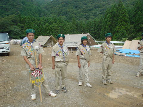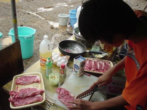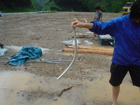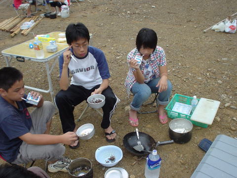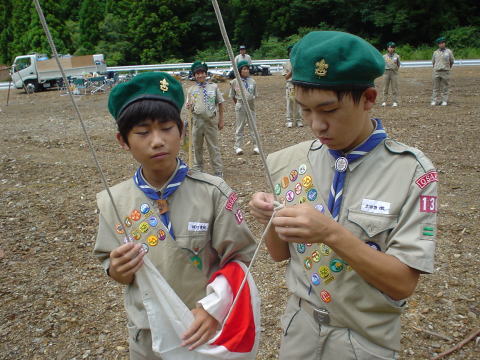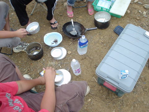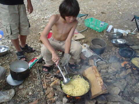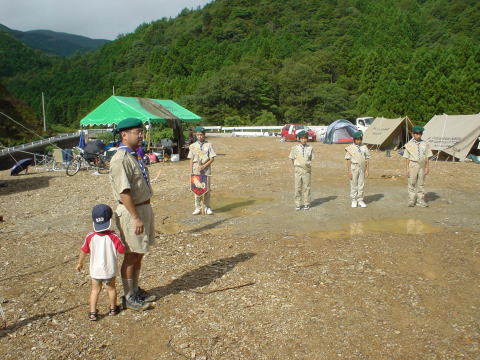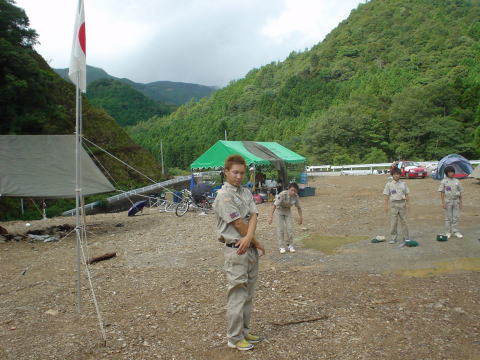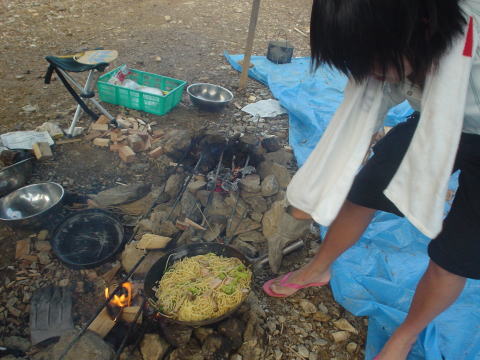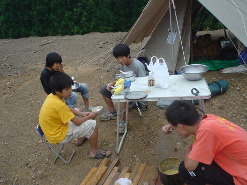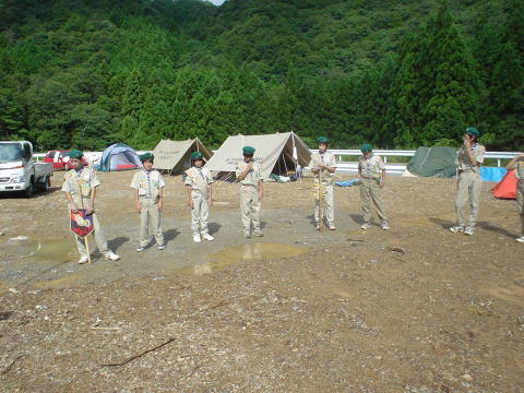 スカウトたちは雨の中の設営を続けながら調理をしていたので