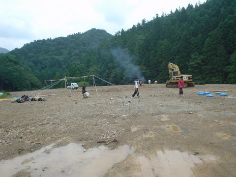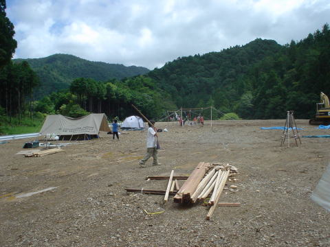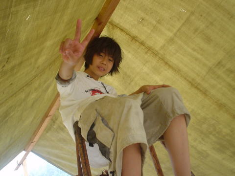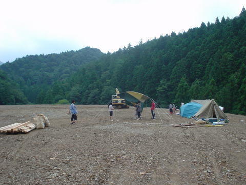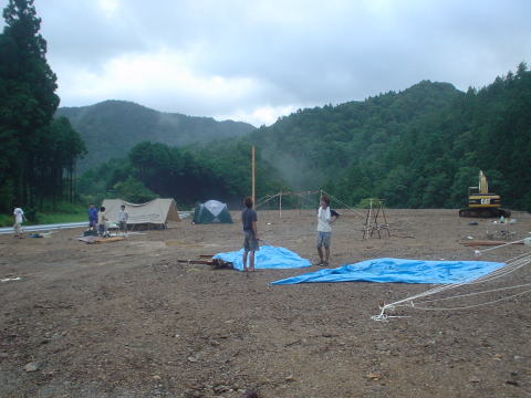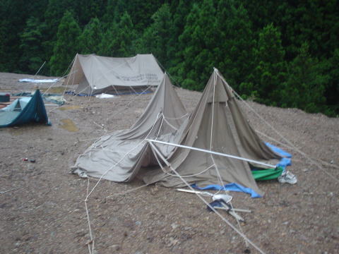 それでも着々と各班でA型テント、ドームテント、タープ、立ちかまどを