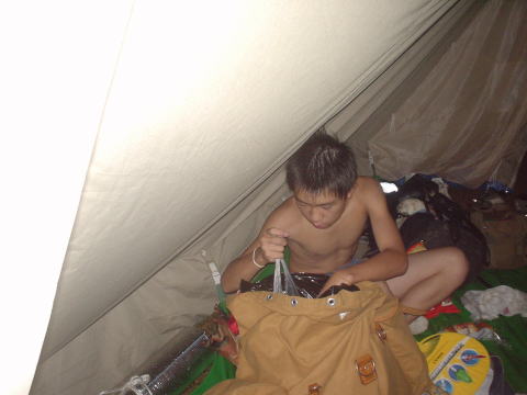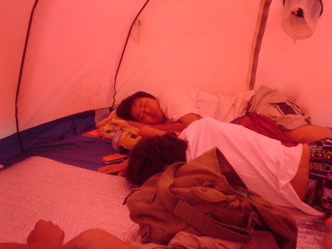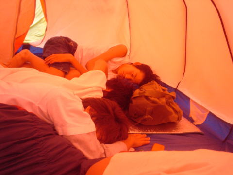 残ったテントと新しくドームを建て、全員寝る場所をなんとか見つけて
