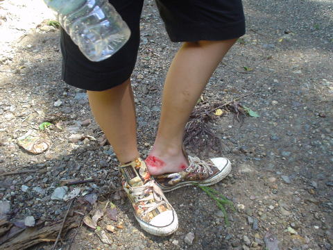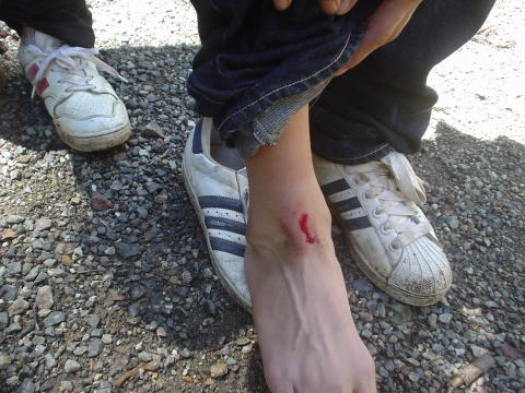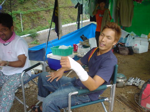 のんびりしているあいだ、上田が川原で転倒して岩の角で手首をきってしまいました
