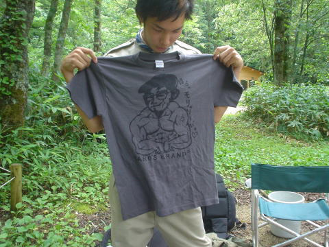 ↓今回作ったおそろいのTシャツはプリントが背中だけだったので
