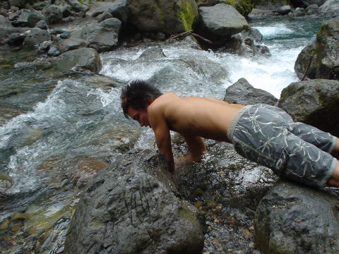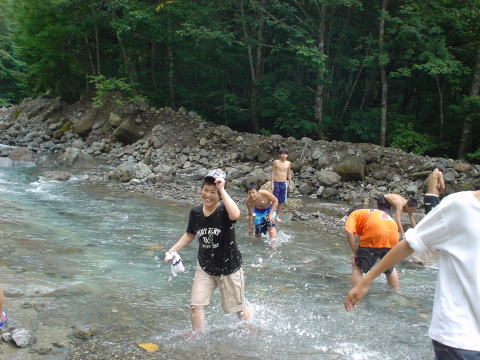 そのあと滝からちょっと下ったところで川に入りあそびました。