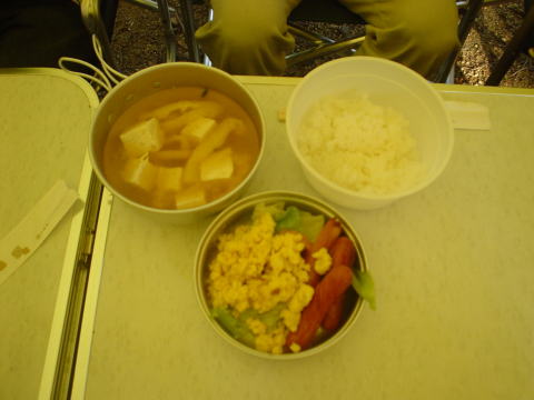 ↓配給の仕分け、朝食は焼き魚と味噌汁とご飯だったと思います。