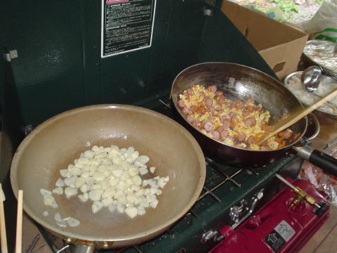 下見から戻るともう夕食の準備が始まっていました。