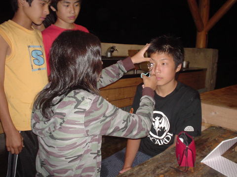 ↓各班ではスタンツ準備。なぜか化粧をしています。