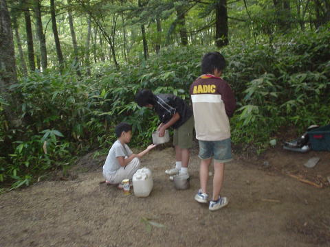 あと、各班サイトには久しぶりに地面に石組みのかまどを作りました