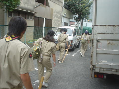そして全員で備品を運び出してトラックに積み込んで