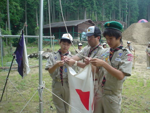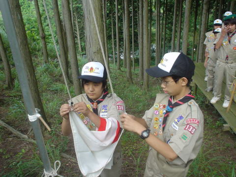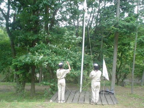 ↓国旗掲揚はまだ手助けが必要です。何回か教えてるんですが