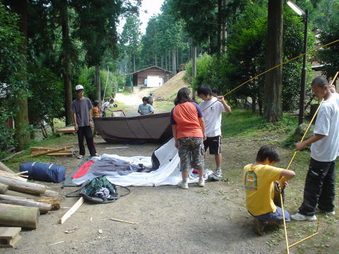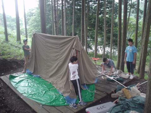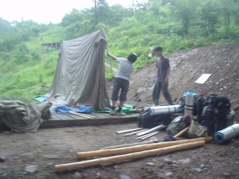 ↓テント建て始め