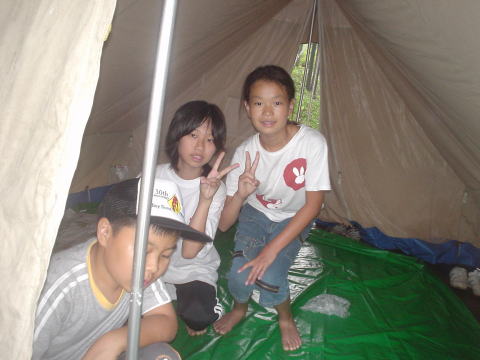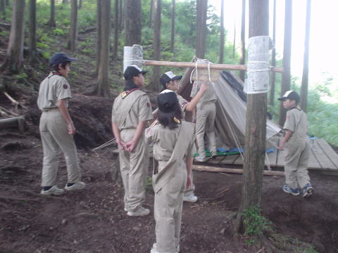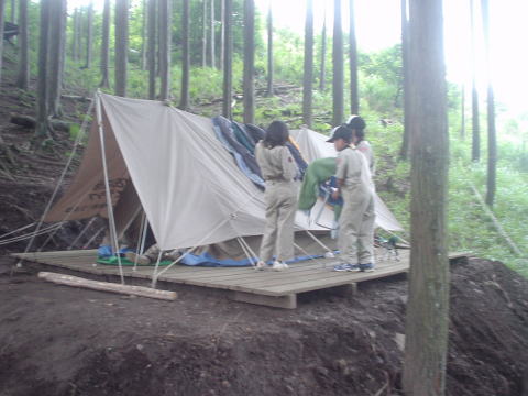 ↓女の子チームも建て完成しました。これから班の設営を手伝いにいきます。