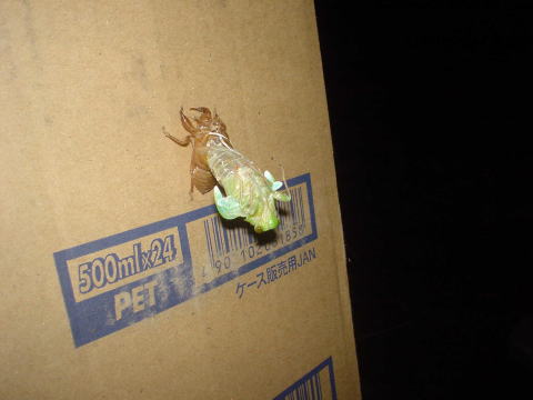 ↓夜まったりしていたらダンボールにセミ発見