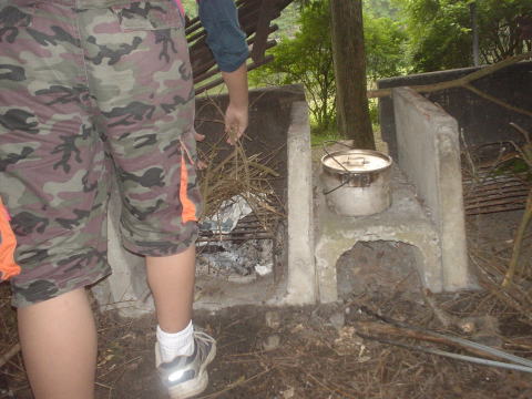 ↓早速かまどに火をつけます。