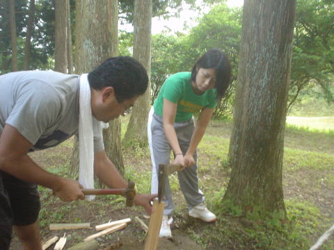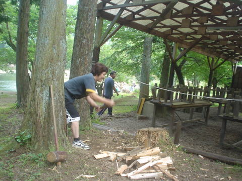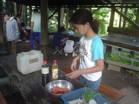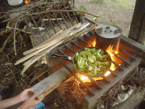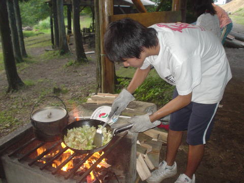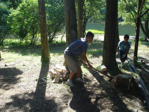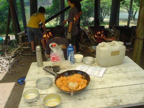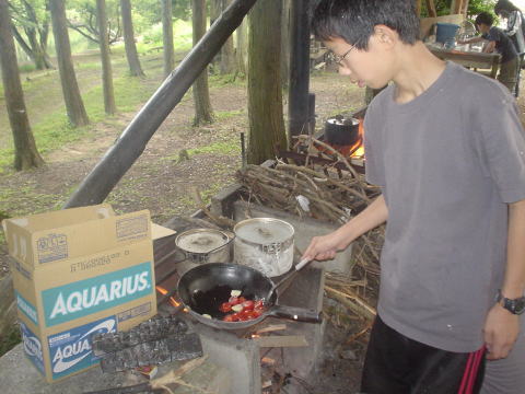 調理中キャンプファイヤーの準備も平行して行いました。